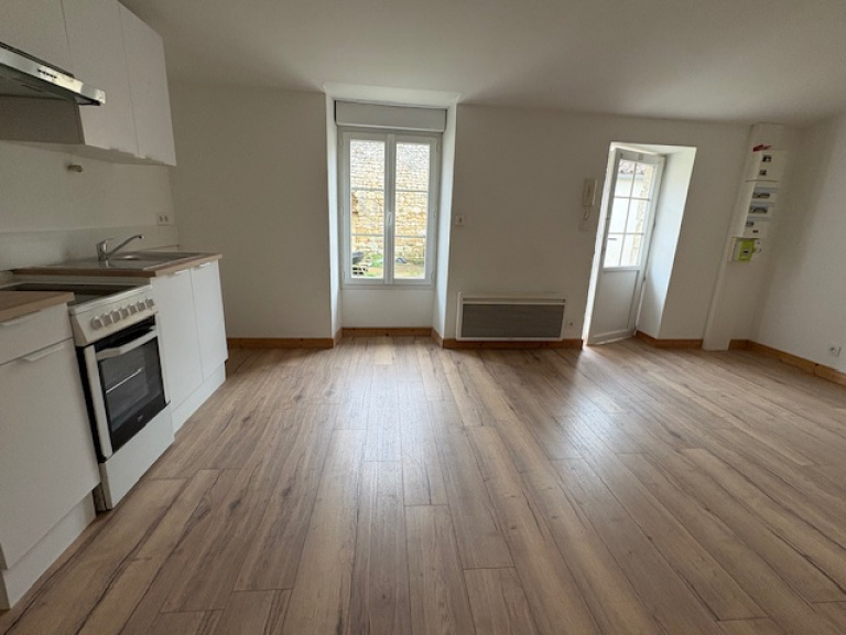 Faubourg, côté cour, APPT F3 de 44,60 m² de de plain-pied composé d'un séjour & cuisine ouverte équipée, couloir - salle d'eau, wc - 2 petites chambres d'enfants . - COUR PRIVATIVE - Libre . Loyer : 645€ + 15€ (minuterie et ent espaces vert) - EAU en sus. F.Ag : 250€ TTC (dont état des lieux) -