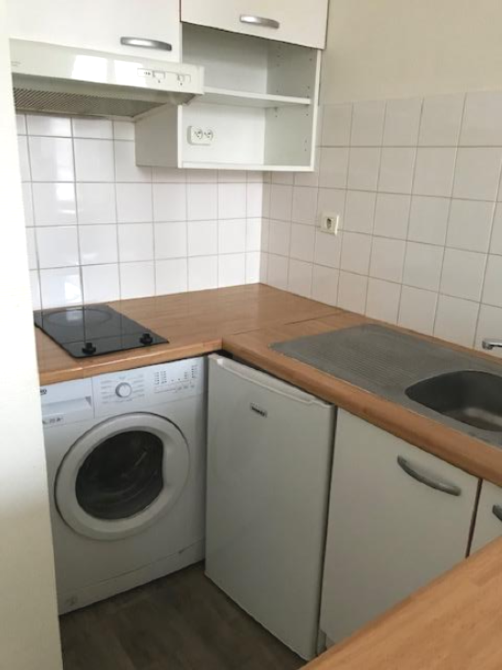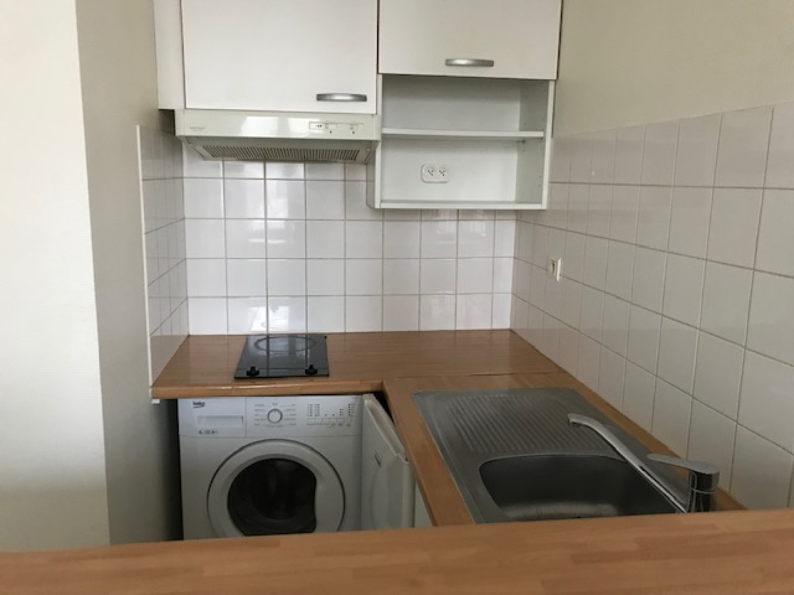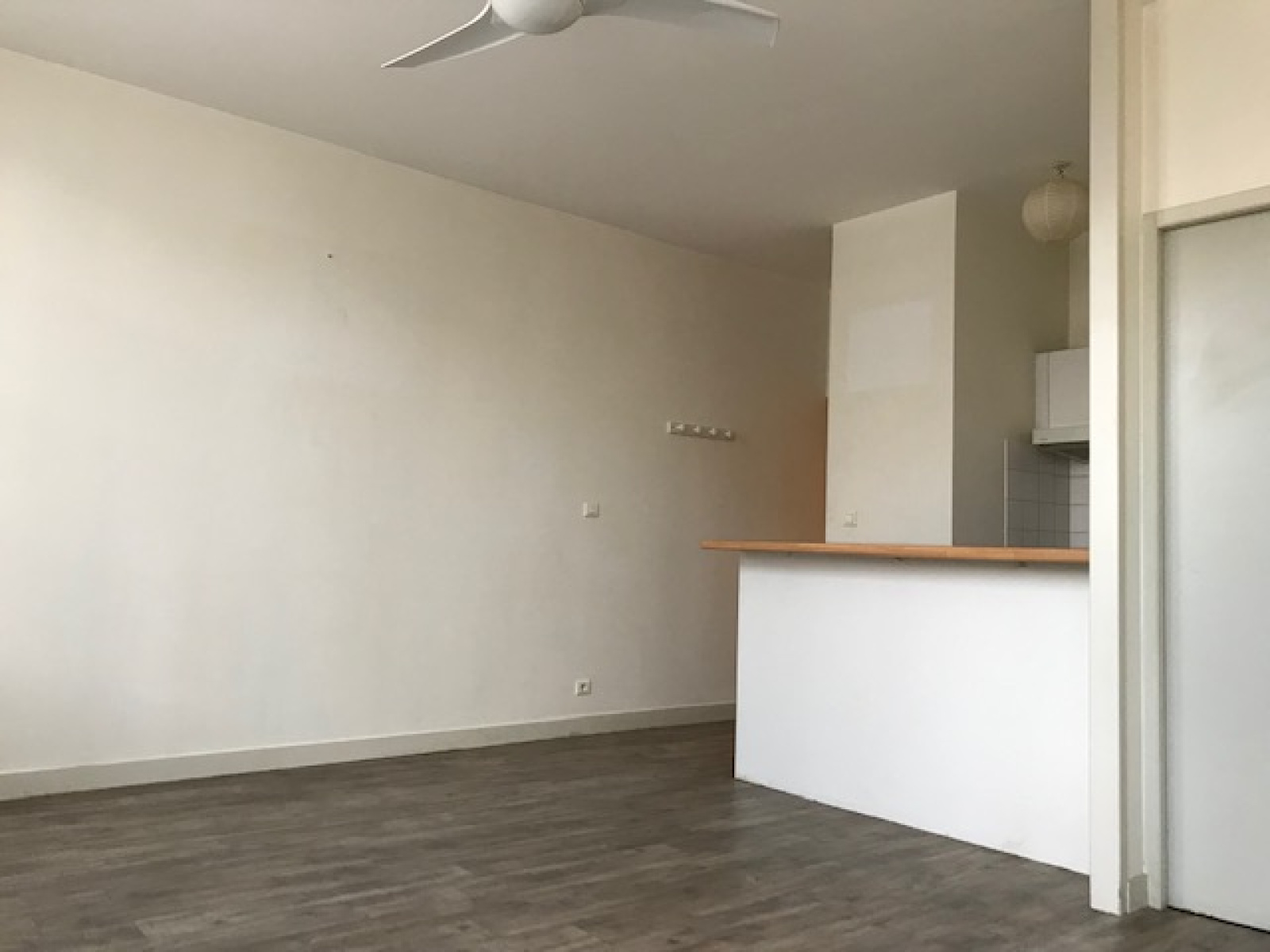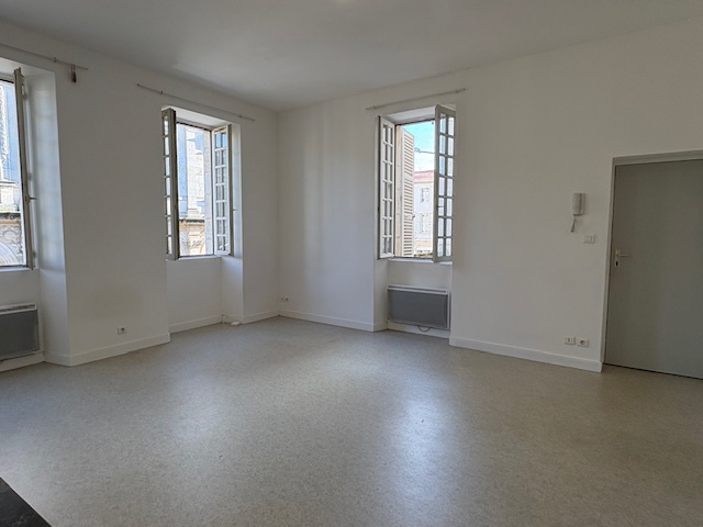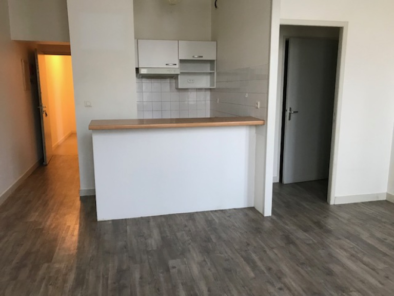 Centre ville, exposé plein sud, au 1er étage, agréable appartement type T2 de 40.26 m² composé : d'une entrée avec placard, pièce de vie avec cuisine américaine (comptoir, rangements, hotte, plaque 2 feux vitrocéramique, frigo top et machine à laver le linge), une petite chambre, dégt, wc & sdb avec grande penderie - Cellier privatif sur le palier - Chauffage électrique - LOYER 450 euros + 30 euros de charges soit 480 euros - 1 mois de caution 450 euros - 200€ TTC - libre