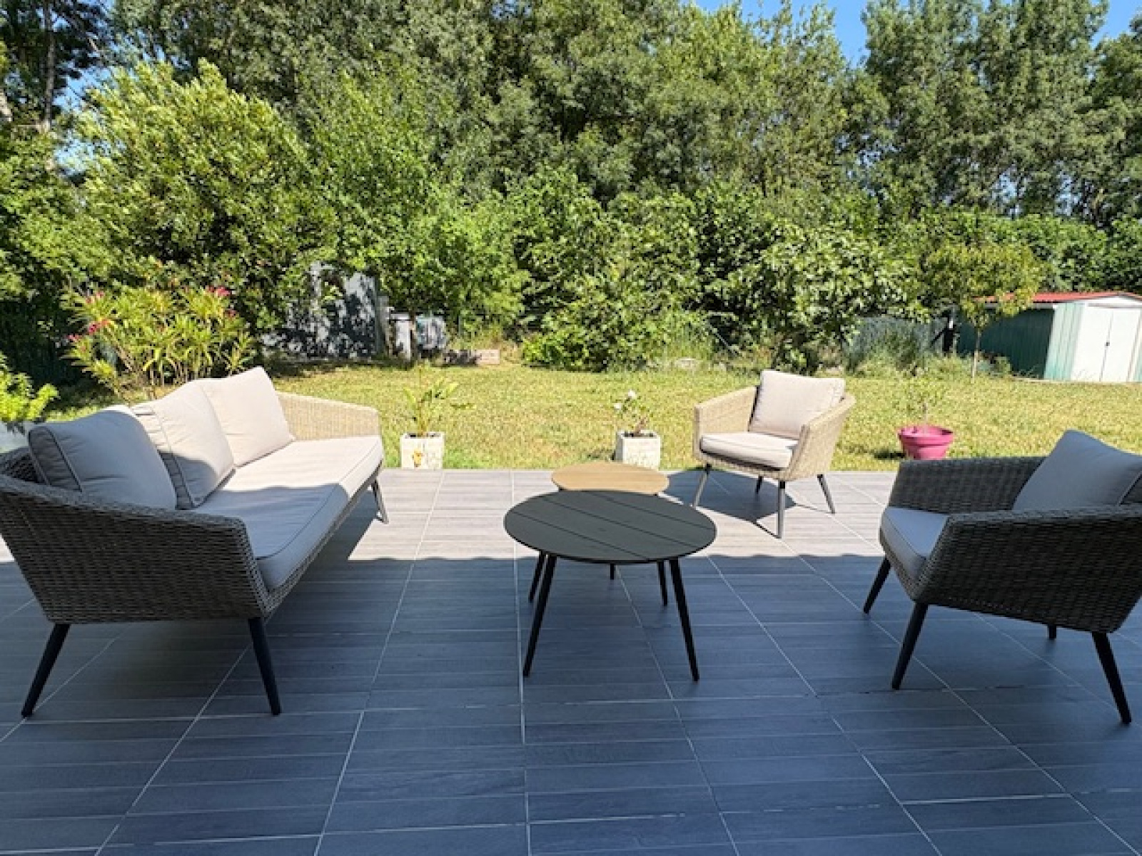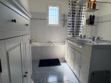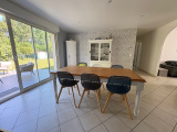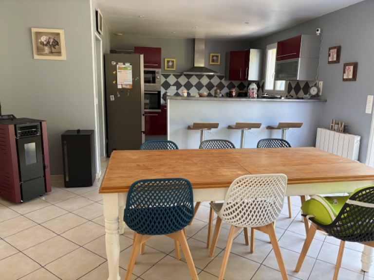 Nord Rochefort, la Mauratière, pavillon de plain-pied d'env 95 m² type 4 composé d'une entrée avec placard, wc, un salon + séjour, grande cuisine ouverte aménagée et équipée (nombreux rangements, hotte, plaque induction, four, lave-vaiselle), couloir desservant une salle de bains et trois chambres. terrasse, jardin et garage - Poêle à granulé - Abri de jardin - Disponbile le 25/06/2026 - Loyer : 1 250€ - un mois de dépôt de garantie 1250€ - Frais d'agence 375€ TTC (état des lieux inclus)