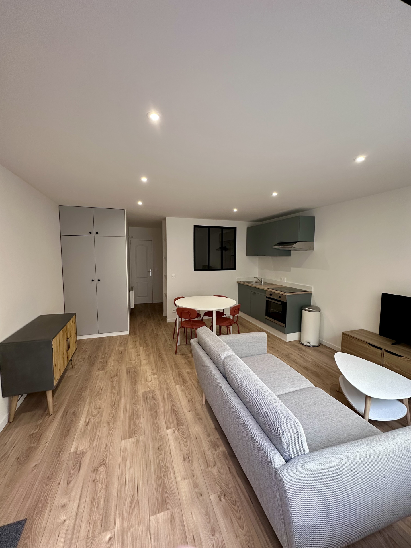 A proximité du Cinéma et de l'hyper centre, Agréable maison d'env 75M² habitable composée d'ne entrée sur couloir, un WC, une pièce de vie avec belle hauteur sous plafond et cuisine ouverte aménagée et semi équipée, l'ensemble d'env 27M². A l'étage, un palier, une mezzanine avec placard (faisant office de bureau ou chambre d'appoint), un WC, une grande chambre avec placard, une SDE. Ses atouts un Garage d'env 14.71M² et une COUR de 12.93M². Loyer 768€ net /mois - un mois de dépôt de garantie 768 € - Frais d'agence 350€ dont env un tiers pour l'état des lieux; Disponible le 1er décembre 2025