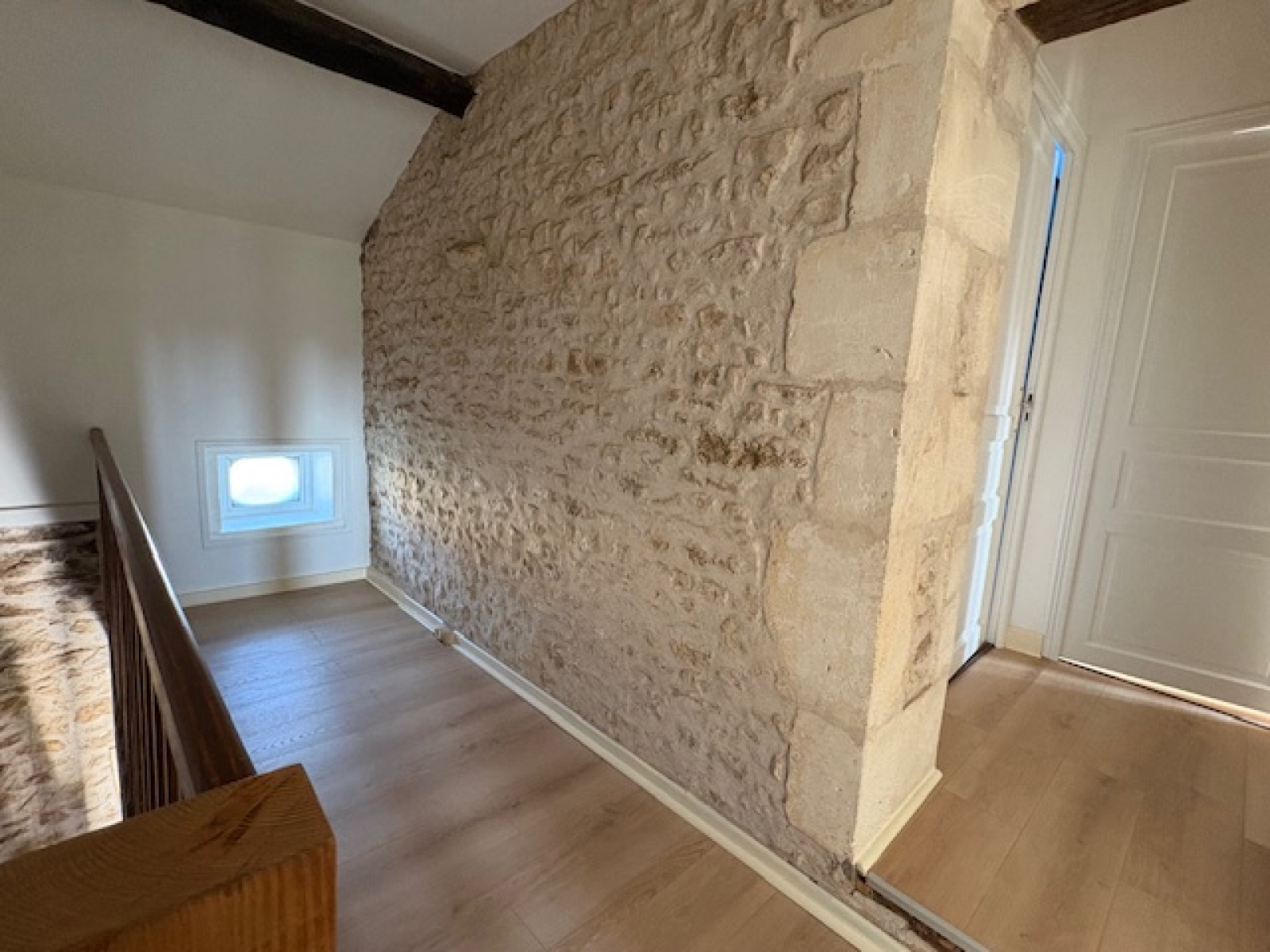 8 km nord Roch, MAISON EN PIERRE F4 d'env 90 m² avec jardin sur l'arrière comprenant : En rdc un couloir, une cuisine aménagée et semi-équipée (rangements, cuisinière), un salon 21 m² avec poutres & cheminée avec insert, une véranda/pièce de 12 m² (chauffée), salle d'eau avec wc. A l'étage, palier, deux grandes chambres (de 14 M² chacune), un bureau et wc avec lavabo. Préau - Disponible le 12/01/2026 - Loyer : 800€ - un mois de caution 800€ - Frais d'agence 375€ TTC