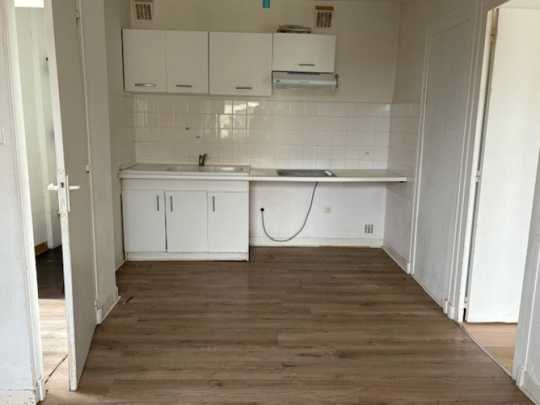 A proximité tous commerces, situé au 1er et dernier étage, côté cour, appartement A RENOVER d'environ 50 m² avec BALCONNET composé d'une entrée, un wc séparé, une pièce de vie avec espace cuisine, une salle d'eau, 2 chambres en enfilade dont une avec placards intégrés. Huisseries double vitrage pvc. En annexe, un débarras en rez-de-chaussée ainsi qu'un jardinet privatif (non attenant). La mise en copropriété est en cours et comprend, un local commercial, 8 logements et des extérieurs. (un plan et un mesurage carrez seront fournis prochainement).. A noté que le DPE sera classé en D dès le 1er janvier 2026. Une remise en peinture des façades et un nettoyage des communs seront pris en charge par le vendeur.