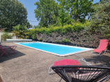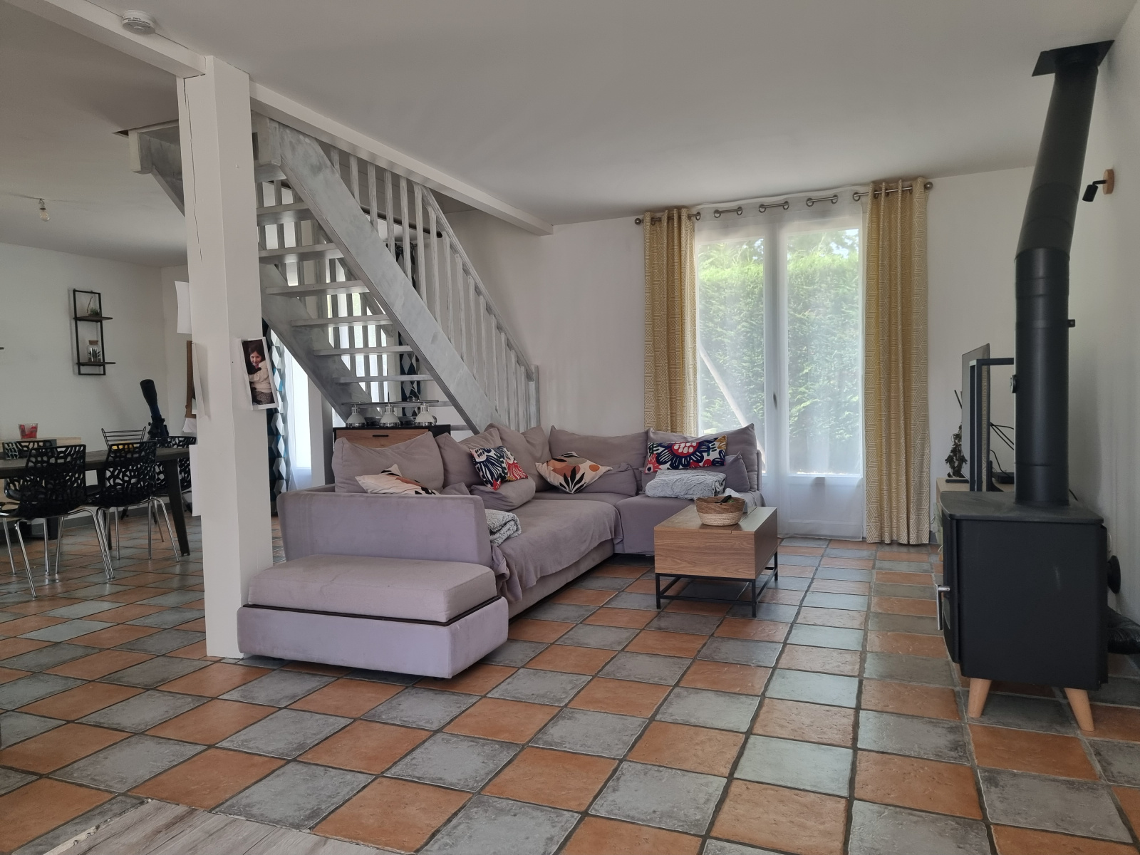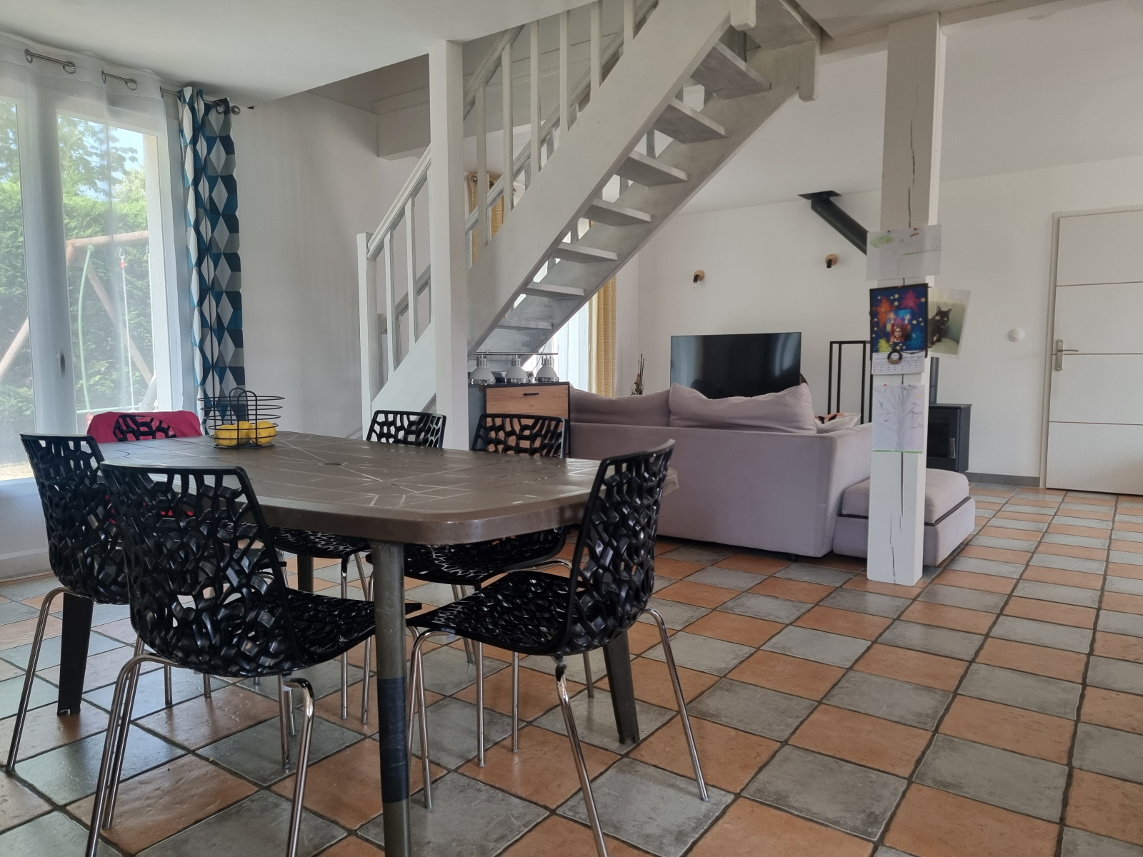 Située dans un environnement calme et verdoyant maison d'env 128M² habitable (152M² surface totale), comprenant en RDC une entrée sur salle à manger avec cuisine ouverte aménagée et semi équipée, un agréable salon avec poêle à bois donnant sur salle de jeux l'ensemble d'env 37M², un WC avec SDE, un cellier chauffée (possibilité bureau), une pièce, une buanderie. A l'étage, un palier donnant sur un WC, 4 chambres, un espace rangement- penderie. Une terrasse et troitoirs terrasse sur jardinet complètent ce bien. Une piscine 9x4, local technique, stationnements voitures sur le terrain. Exposition aux 4 points cardinaux.
