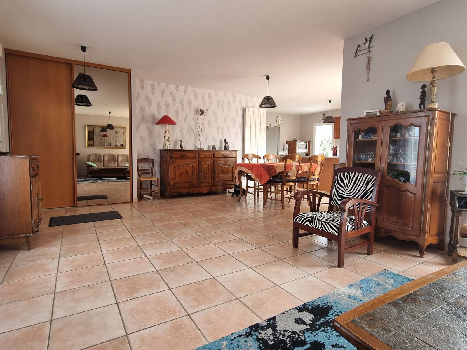 Agréable PAVILLON DE PLAIN PIED, FONCTIONNEL ET ENTRETENU de 2008, d'env 99M² composé d'une entrée avec placard sur pièce de vie avec une cuisine ouverte aménagée et semi équipée l'ensemble de 50M² donnant sur un patio, un cellier-buanderie- chaufferie, un couloir desservant un WC, une SDB (douche à l'Italienne et baignoire), 3 chambres dont 2 avec placard. Un garage de 19M², une terrasse sur jardin arboré et végétalisé. Accès sur 2 rues.