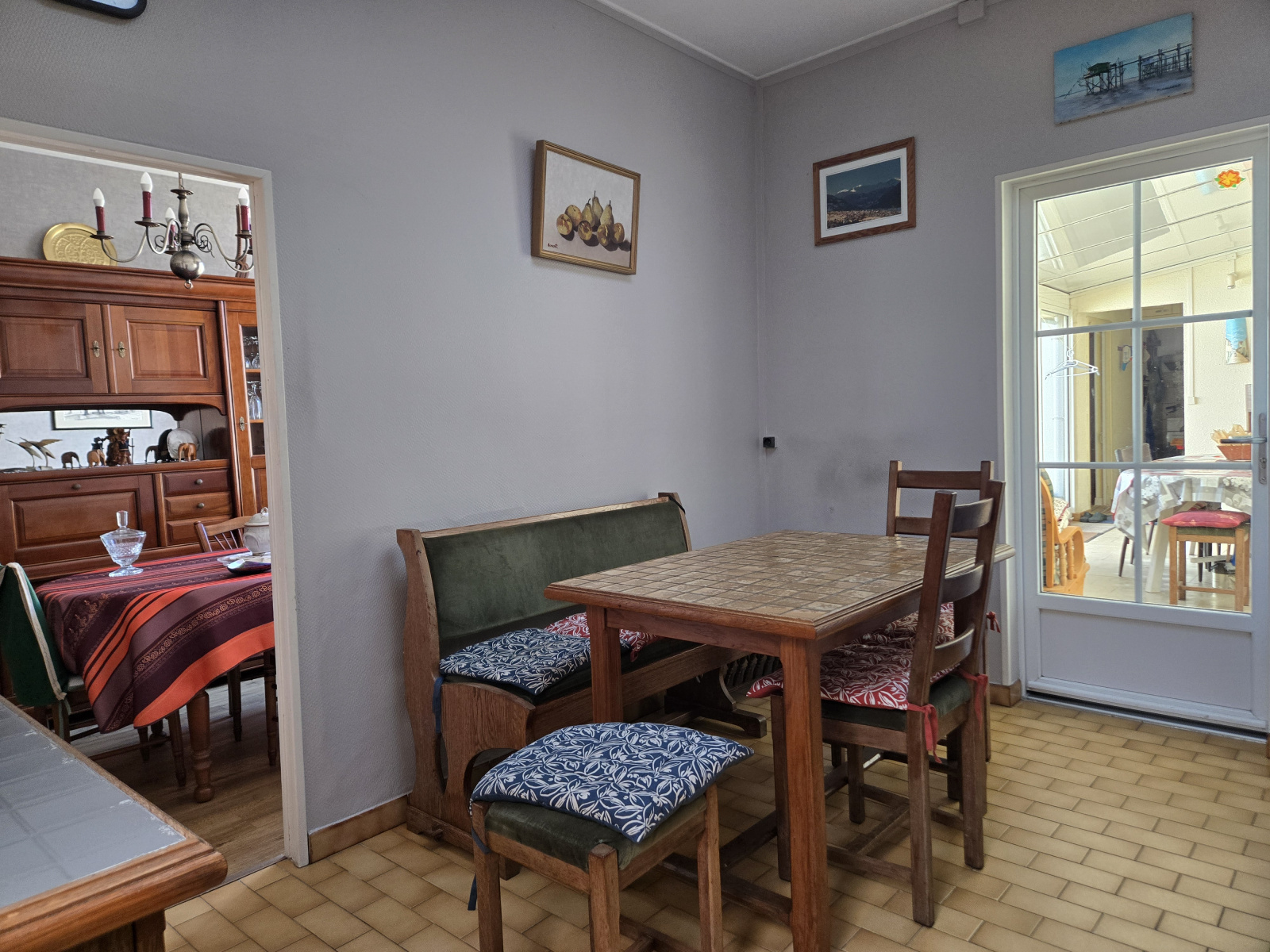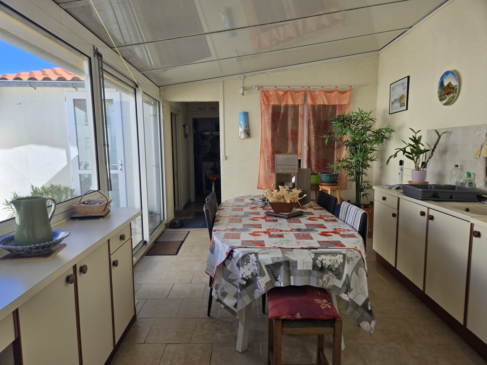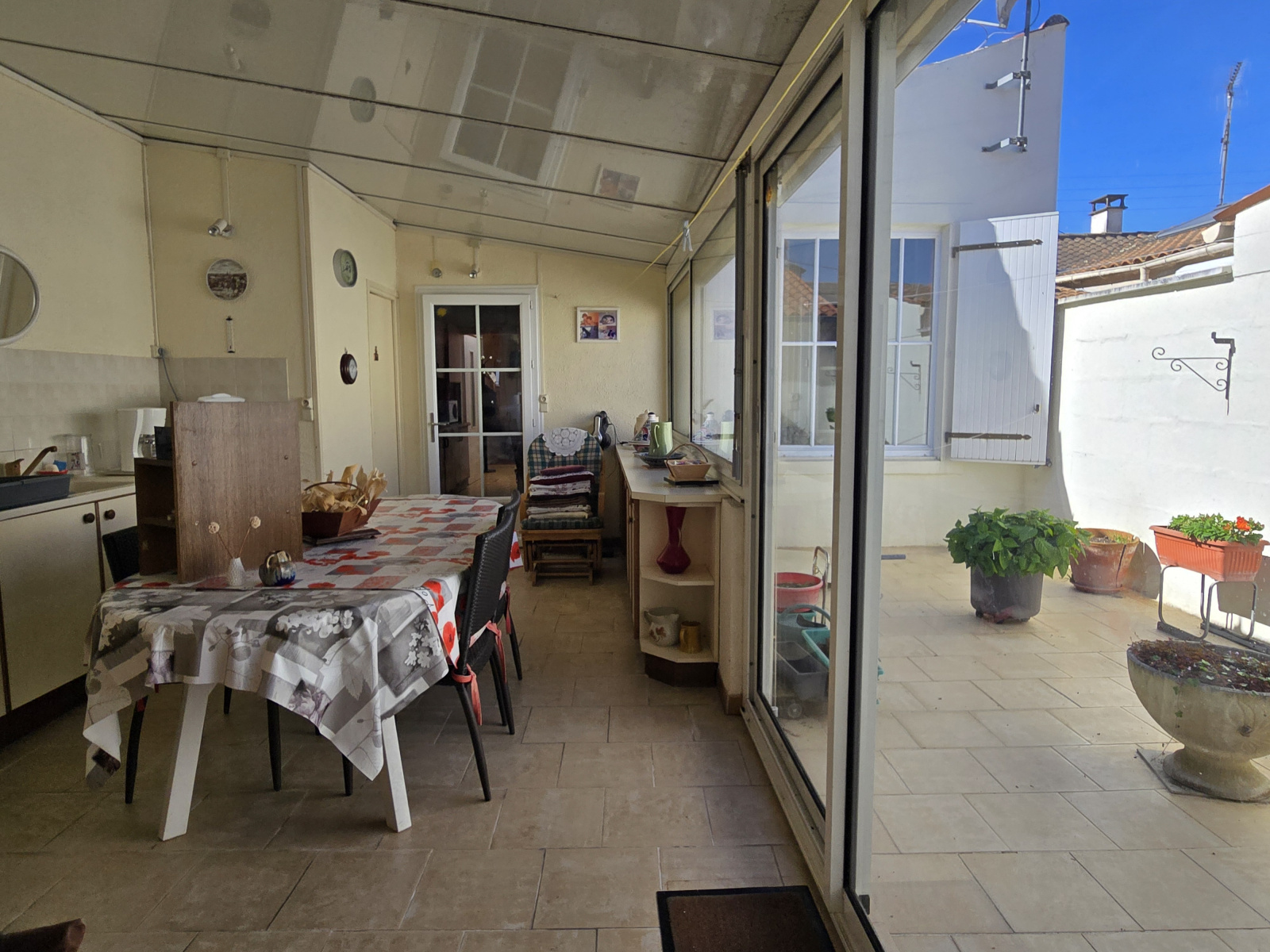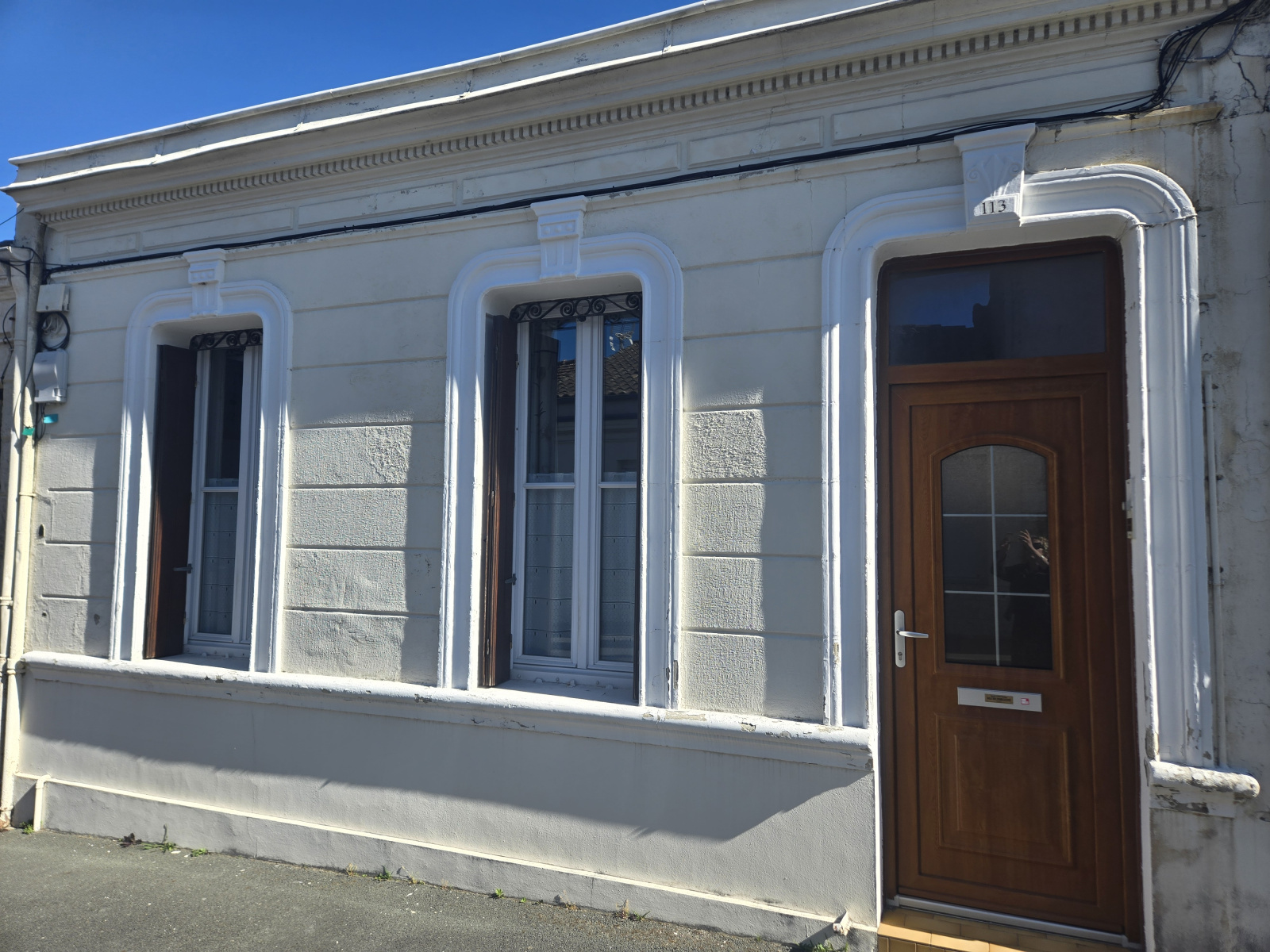 Maison de faubourg de plain pied d'env 77M² (surface TOTAL de 95M²) composée d'une entrée sur couloir, une chambre avec placard accès à la SDE, un salon salle à manger d'env 21M², une cuisine séparée aménagée et équipée, une véranda (non chauffée), un WC, une 2ème chambre avec placard (non chauffée), un cagibis, un atelier, une cour d'env 15M², une cave.