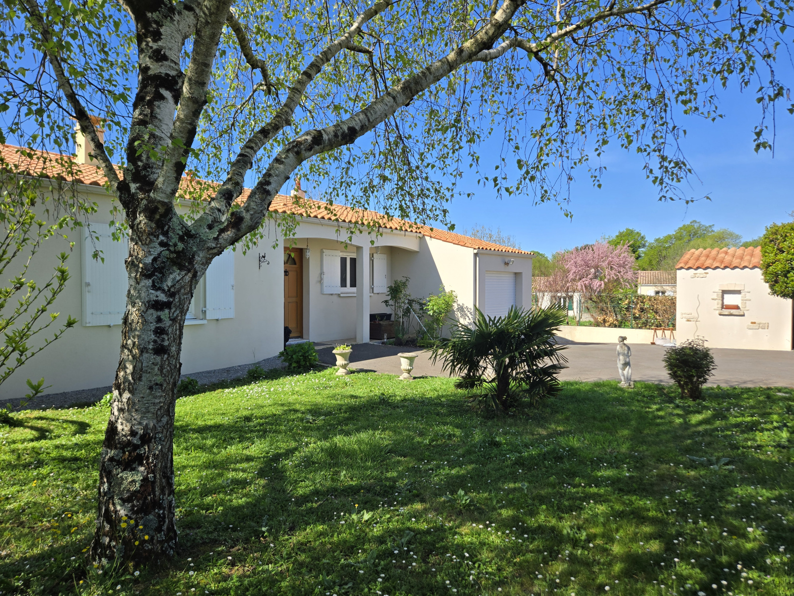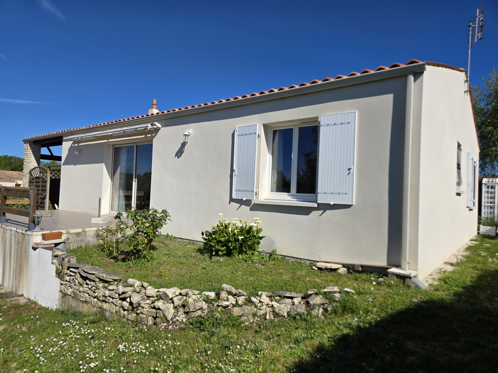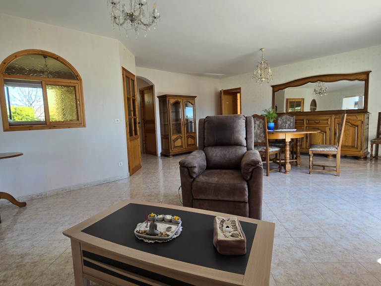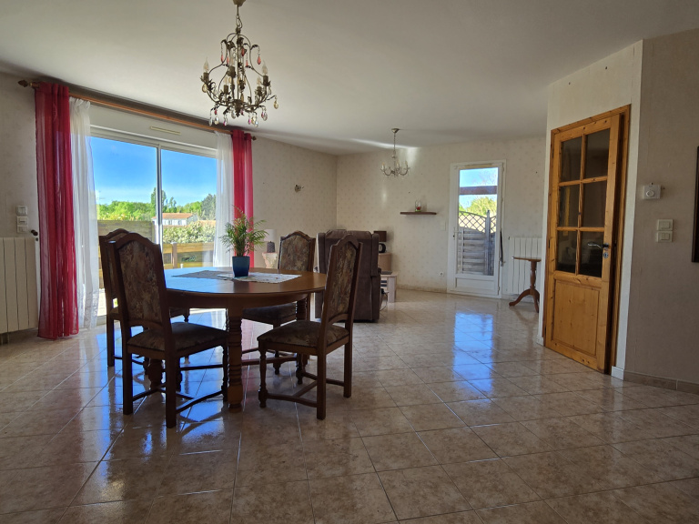 Située dans un quartier résidentiel calme et recherché, sans aucune mitoyenneté, cette maison de plain-pied construite en 2002 sur vide sanitaire se distingue par la qualité de sa construction et son bon état d'entretien. Elle se compose d'une entrée, wc, une agréable pièce de vie d'env 35 m² et d'une cuisine séaprée aménagée et semi équipée. L'espace nuit comprend trois chambres (dont une d'enfant) avec placards, et d'une salle d'eau. A cela s'ajoutent une terrasse, un préau/patio couvert, un grand garage avec galetas et une dépendance. Le tout est implanté sur un charmant jardin clos et arboré. Plusieurs véhicules peuvent également être staionnés à l'avant de la propriété.