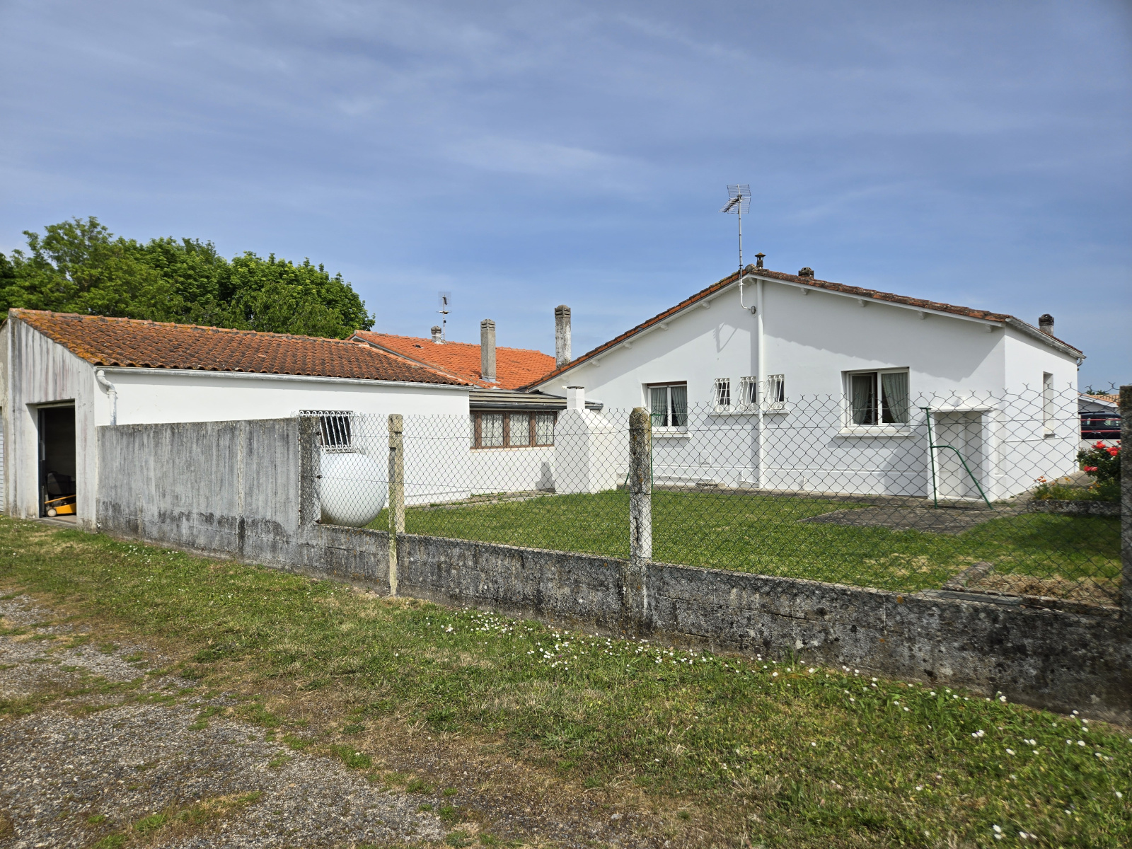 PROCHE COMMERCES, ACCES SUR 2 RUES, LUMINEUSE MAISON DE PLAIN PIED non mitoyenne d'env 75M² proposant une entrée, une pièce de vie, une cuisine séparée aménagée et équipée, 3 chambres dont une avec placard, un WC, une SDB. Un garage d'env 22M² communiquant à la maison, une loggia donnant sur jardin et un second garage d'env 25M². Un jardin clos. Expo Est/Sud/Ouest.